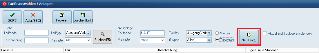 Klicken Sie auf die Schaltfläche „Neu“, um den neuen Tarif anzulegen.image-1691578178720.png