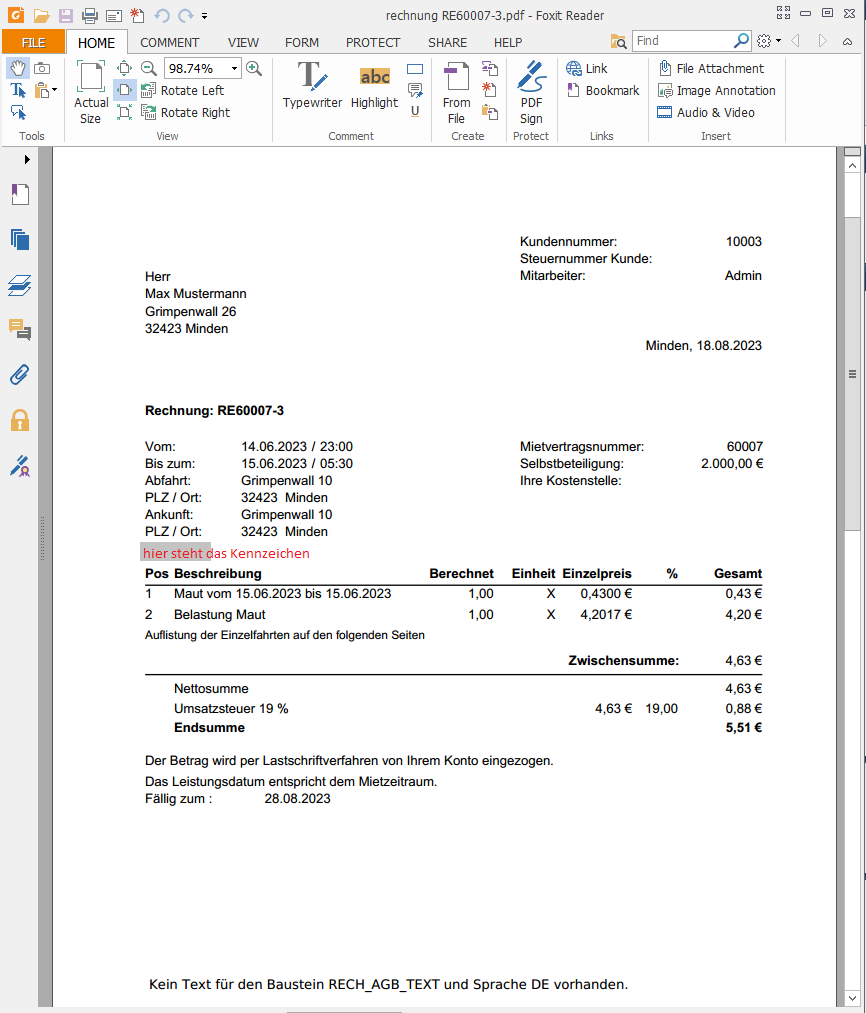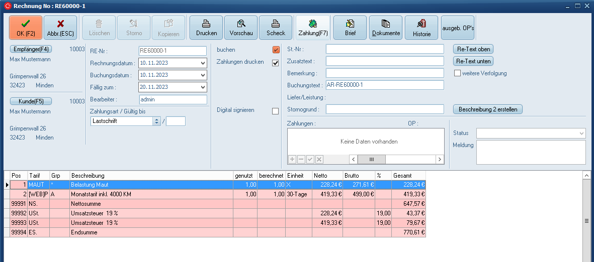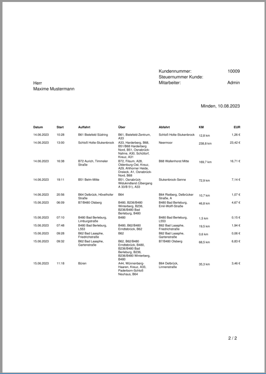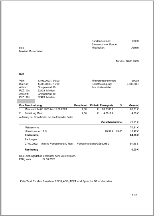 Im Standard wird die Mautrechnung zugehörig zum Mietvertrag erstellt. Es kann aber auch ein gesonderter Rechnungsnummernkreis für Maut erstellt werden.