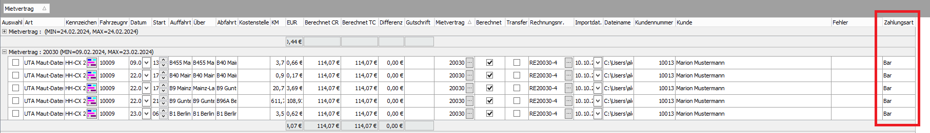 • Das zwei Mietverträge direkt aufeinander folgen und die Mautposition genau auf diesen Übergang fällt.