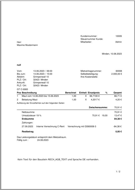 Im Standard wird die Mautrechnung zugehörig zum Mitvertrag erstellt. Es kann aber auch ein gesonderter Rechnungsnummernkreis für Maut erstellt werden.