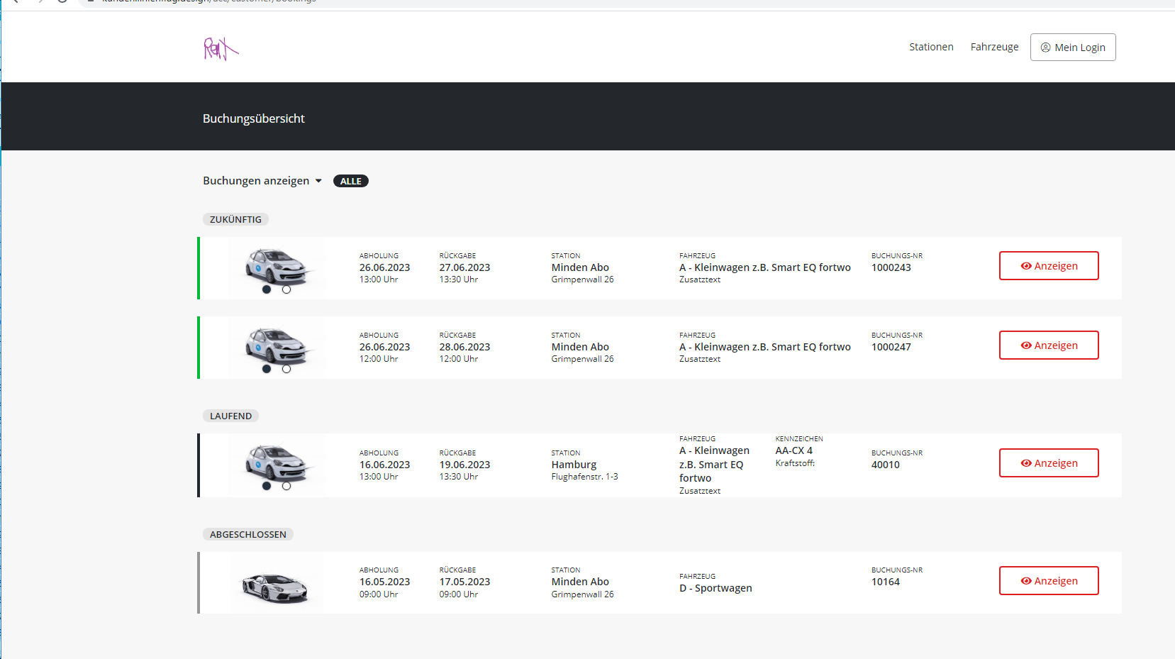 Über die Buchungsliste im Kundenlogin kann der Kunde nun seine Reservierungsbestätigungen und Mietverträge einsehen und drucken.