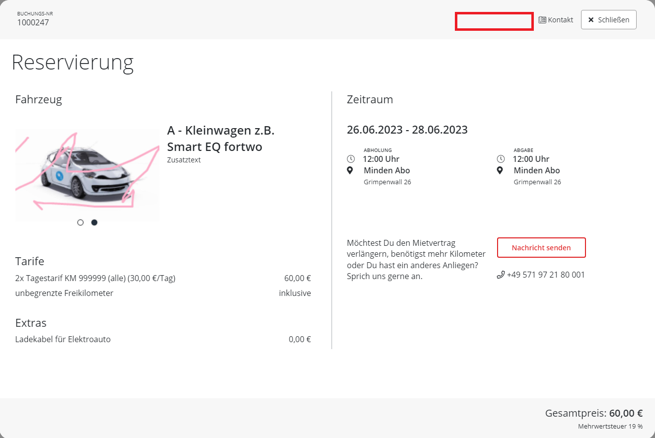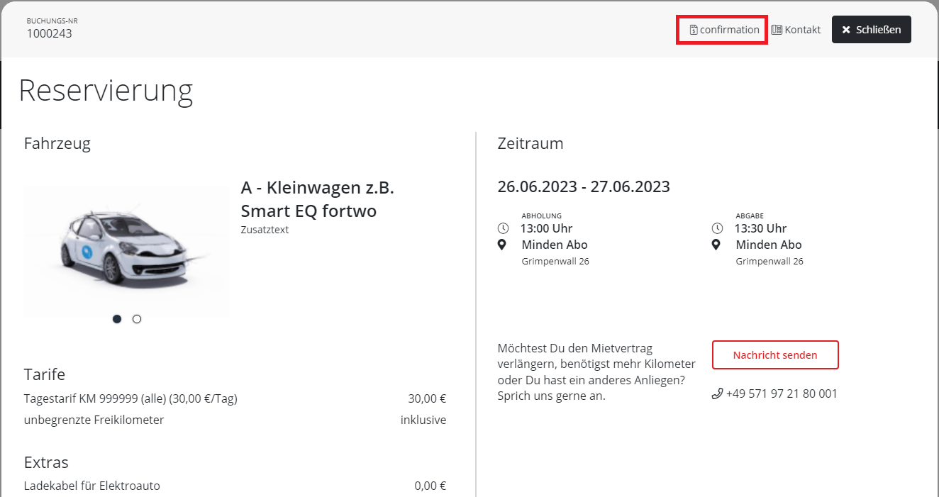 Bei abgeschlossenen Vorgängen kann diestehen Reservierungsbestätigung und der Mietvertrag gedrucktzur werden.Verfügung.