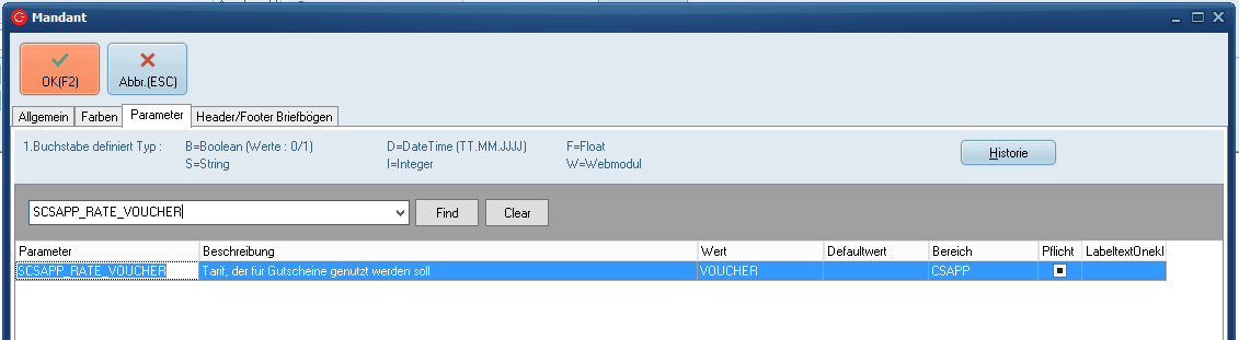 - Die Rate "Voucher" muss im Parameter SCSAPP_RATE_VOUCHER hinterlegt werden