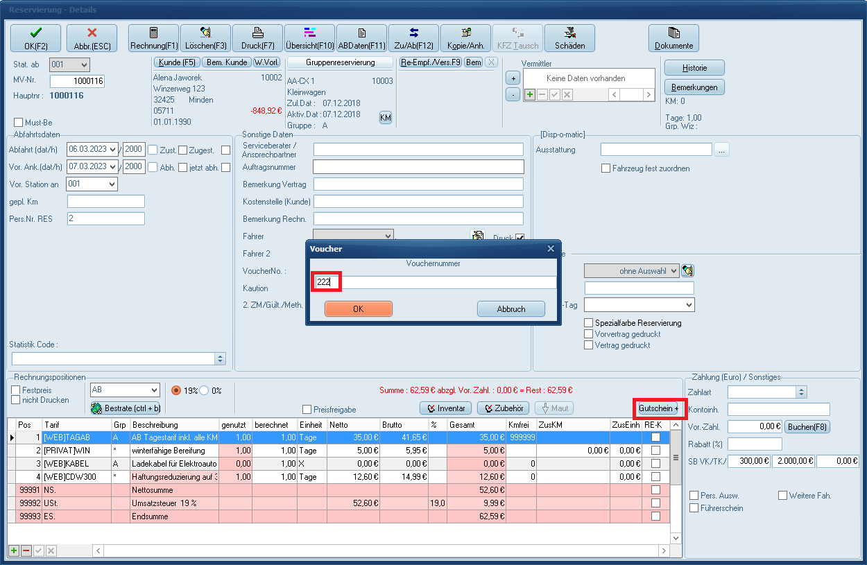 Manuelle Eingabe eines Gutscheines in C-Rent