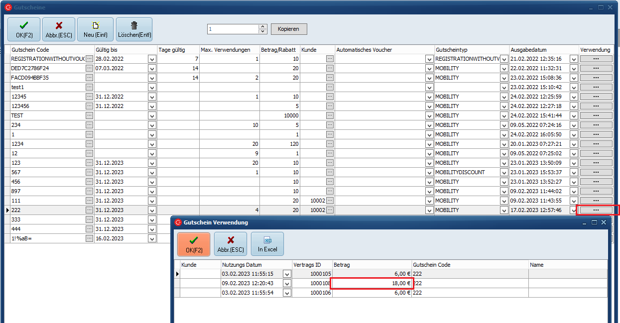> Die maximalen Verwendungen können bei MOBILITY nicht verwendet werden – hier wird immer gegen den Betrag geprüft. Bei Registrierungsvouchern ist das möglich