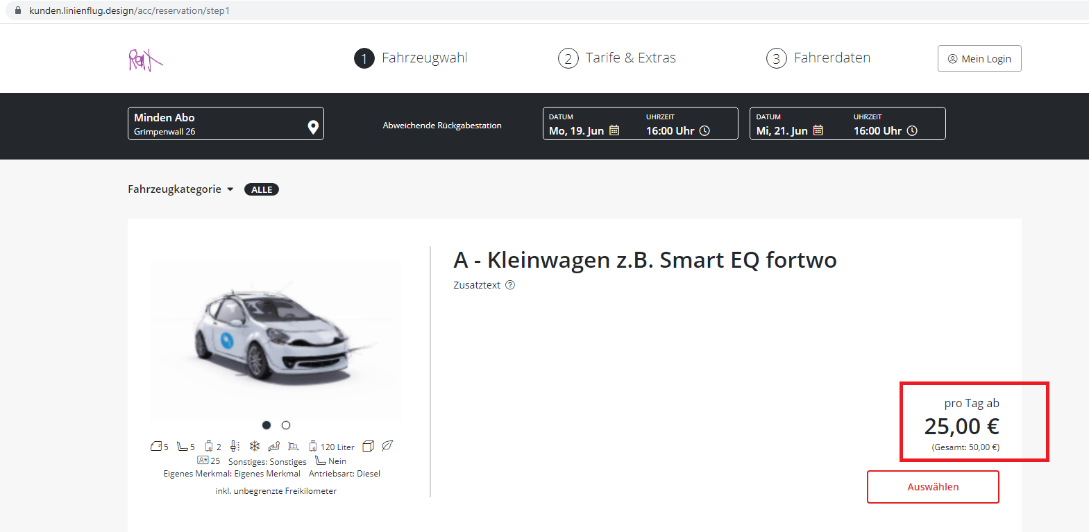 Parameter BORM_GESAMTPREIS_FETT erzeugt den Wechsel zwischen Gesamt und Einzelpreis in Step "Fahrzeugwahl":