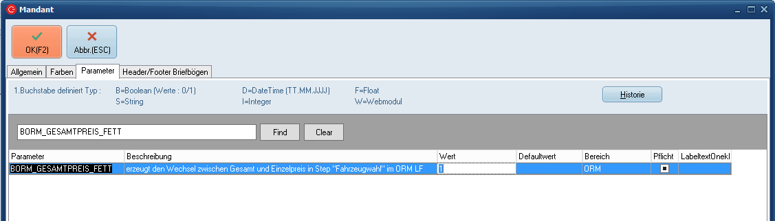 Parameter BORM_GESAMTPREIS_FETT
