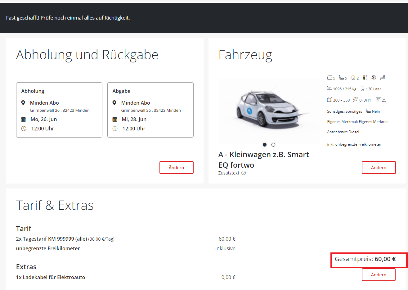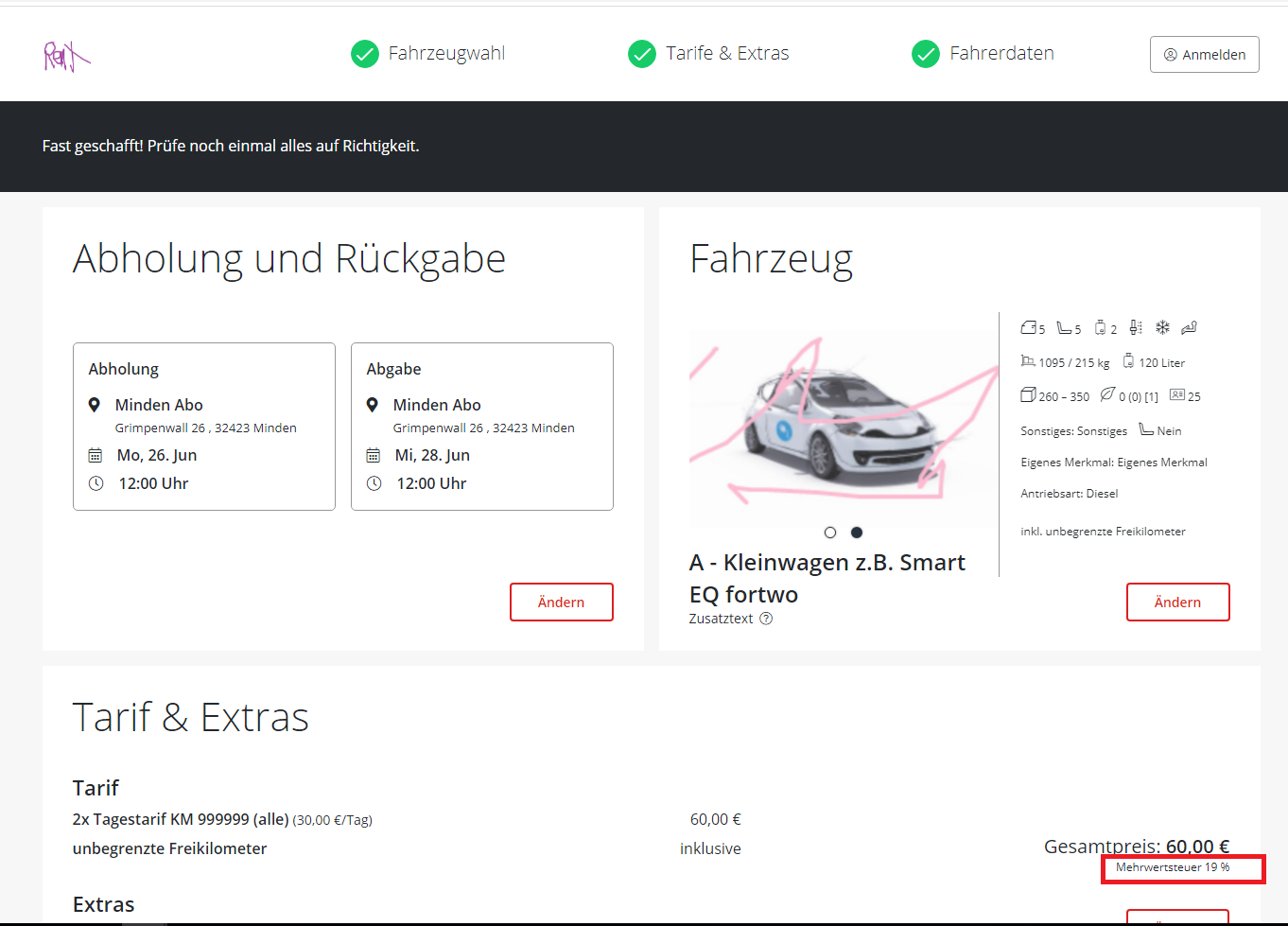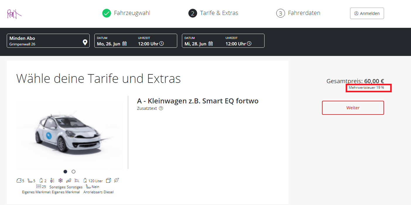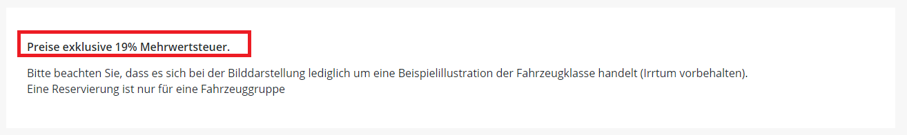 Hinweis zur USt unter dem Preis in Step 2