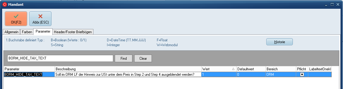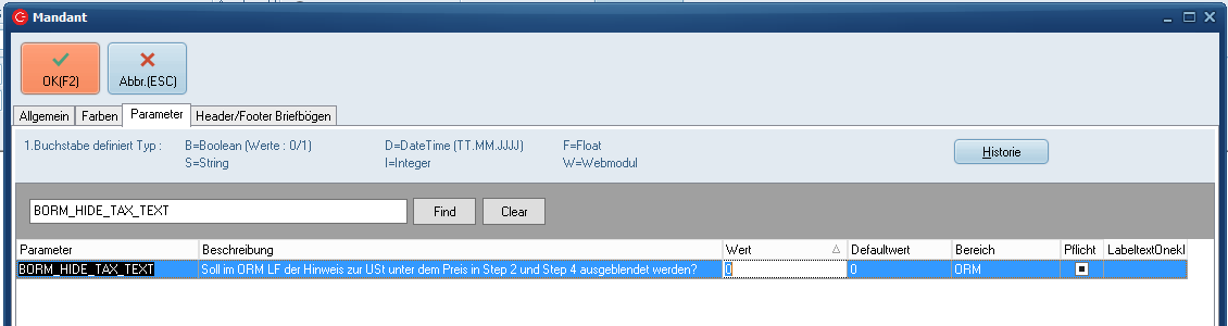 Parameter BORM_HIDE_TAX_TEXT