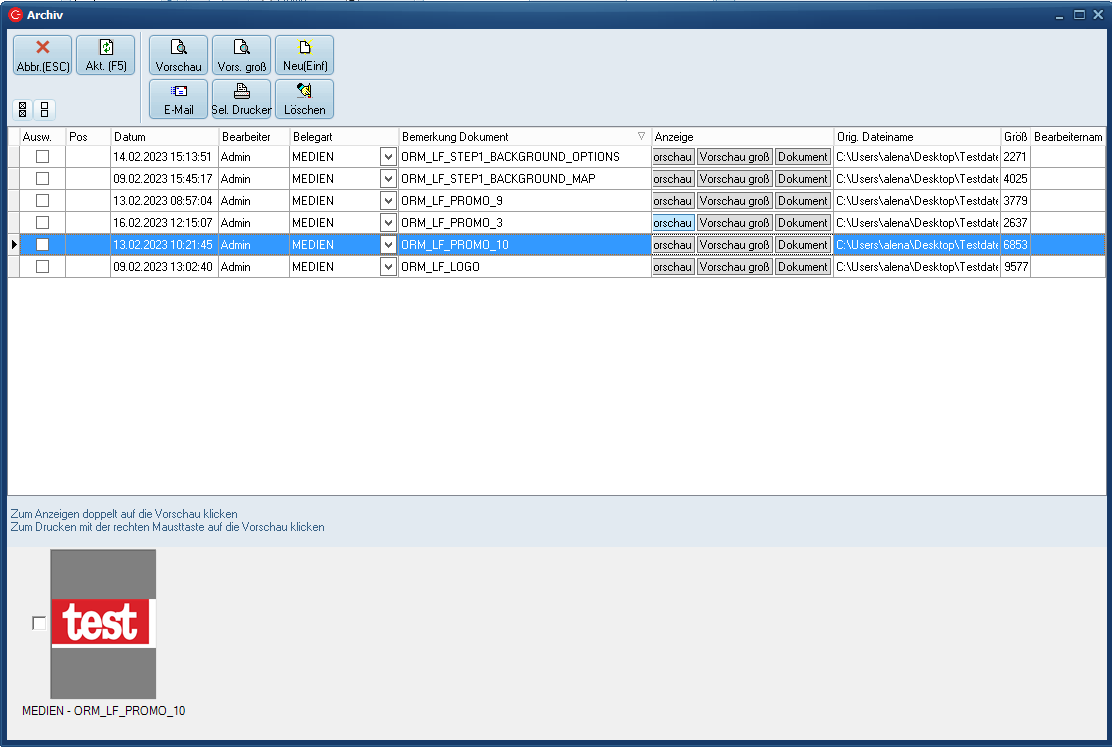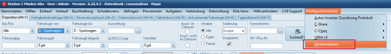 Die Maske Mediendateien erreichen Sie über den Reiter Konfigurationstools > Mediendateien