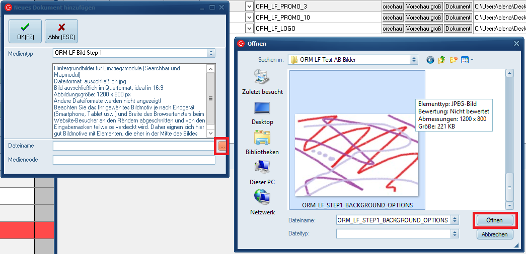 Über die Mediendatei können die Bilder im ORM LF geändert werden.