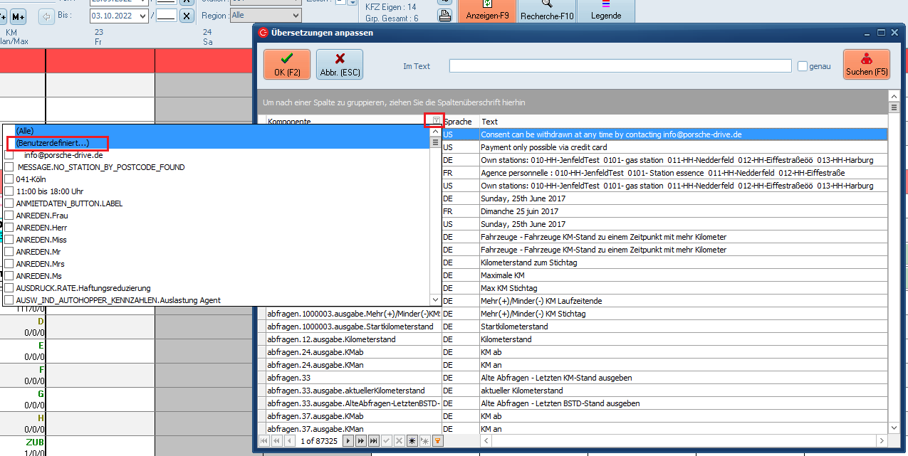 - Option 2: Klick auf die Spalte "Komponente" und auf das Filtersymbol.