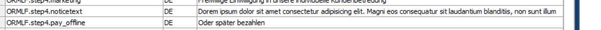 Scrollen Sie nun zur Komponente "ORMLF.step4.noticetext". In der Spalte Text kann der Text angepasst werden: