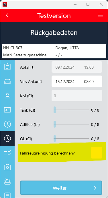 - Das "Fahrzeugreinigung berechnen?"-Häkchen wurde in die "Rückgabedaten"-Maske verschoben.