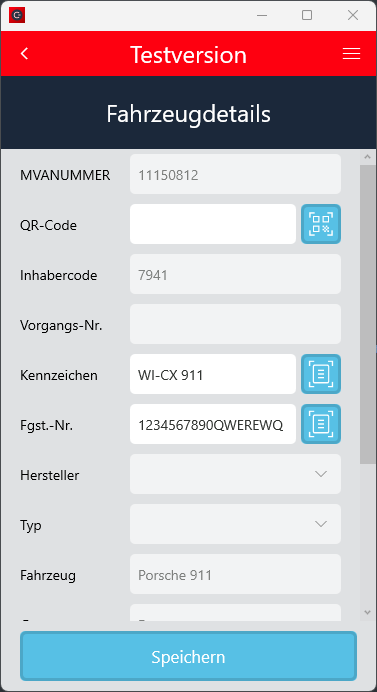 Des Weiteren lässt sich der QR-Code, das Kennzeichen und die Fahrgestellnummer nun manuell anpassen: