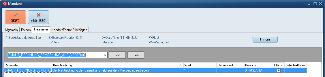 1146319 Bei Mautrechnung hat man die Möglichkeit das Bemerkungsfeld aus dem Mietvertrag zu befüllen. Parameters "BMAUT_RECHNUNG_BEMERKUNG_AUS_VERTRAG" muss dazu auf 1 gestellt sein.