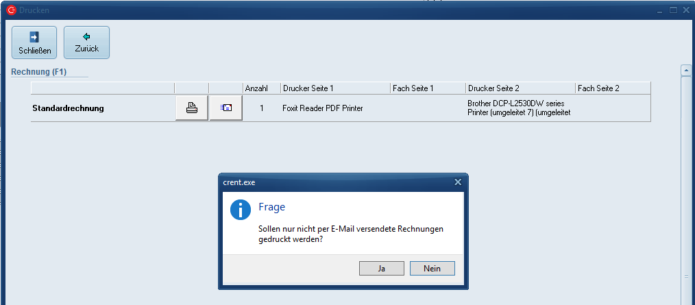 Bei Klick auf den Drucker Button werden Sie zusätzlich gefragt, ob alle oder nur nicht per Mail versendete gedruckt werden sollen.