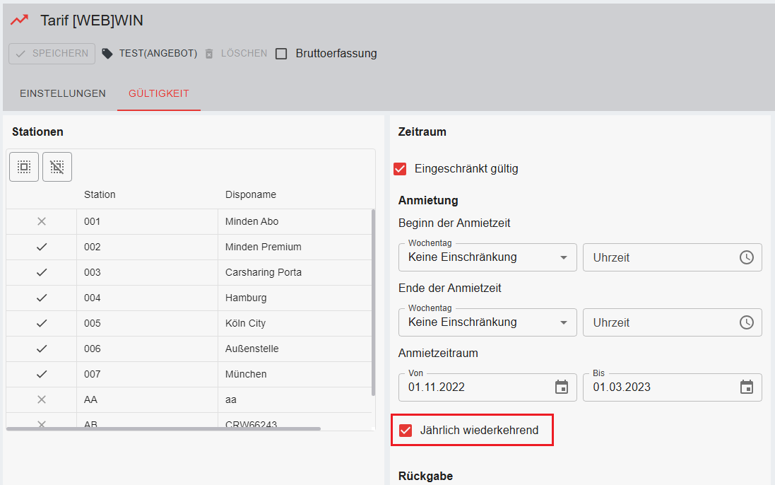 1146823 Einrichtung Checkbox "jährlich wiederkehrend" wurde in den Tarifen eingebracht.