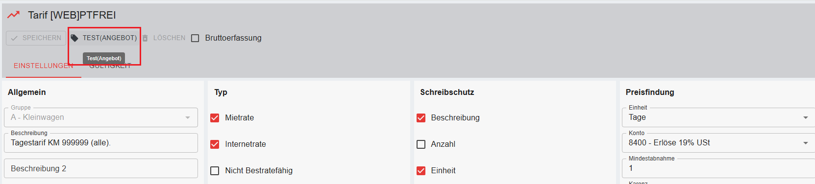1145173 Es wurde die Testfunktion "TEST(ANGEBOT) in den Tarifen eingebracht.