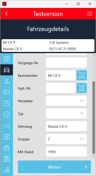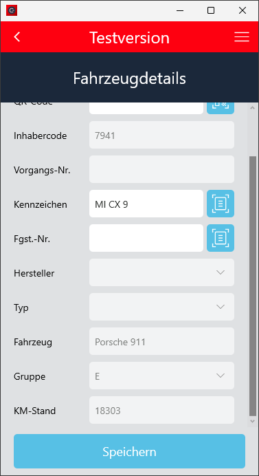 Die Maske Fahrzeugdetails wurde so angepasst, dass beim Check-In die Daten vor belegt werden können.