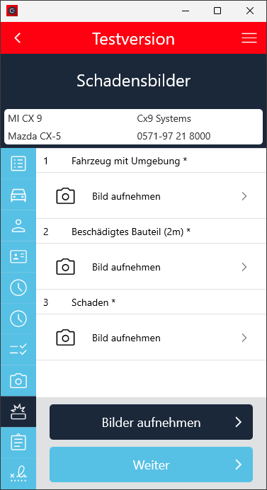 Die Schadens- und Schadensbildaufnahme wurde weiter in die Protokollaufnahme integriert.