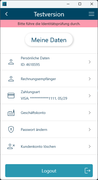 - Die Maske "Meine Daten" wurde um die Anzeige des zum Kunden hinterlegten Zahlungsmittel erweitert.