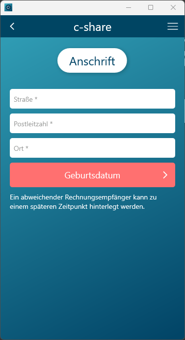 Screenshot Screenshot - Die Aufnahme des Rechnungsempfängers wurde aus dem Registrierungsablauf entfernt.