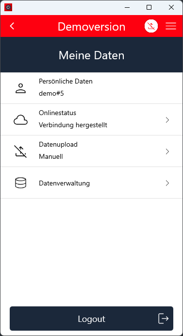 Zusätzlich wird in der Kopfzeile der Masken ein neues Icon angezeigt, dass wenn es angetippt wird, die Meldung "Der Datenupload wurde deaktiviert" ausgibt.